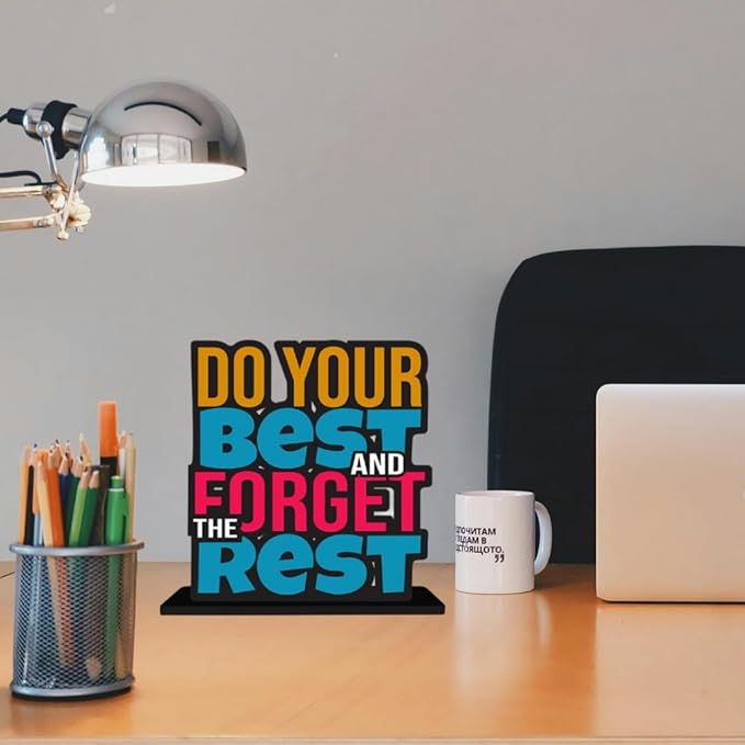 - Motivational desk decor with the empowering quote “Do Your Best and Forget the Rest”—perfect for inspiring effort, positivity, and stress-free achievement at home or work.