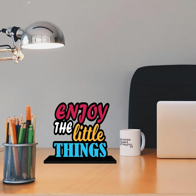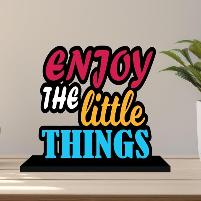 - Uplifting table decor featuring the motivational quote “Enjoy the Little Things”—perfect to spark joy, gratitude, and mindfulness in any space.