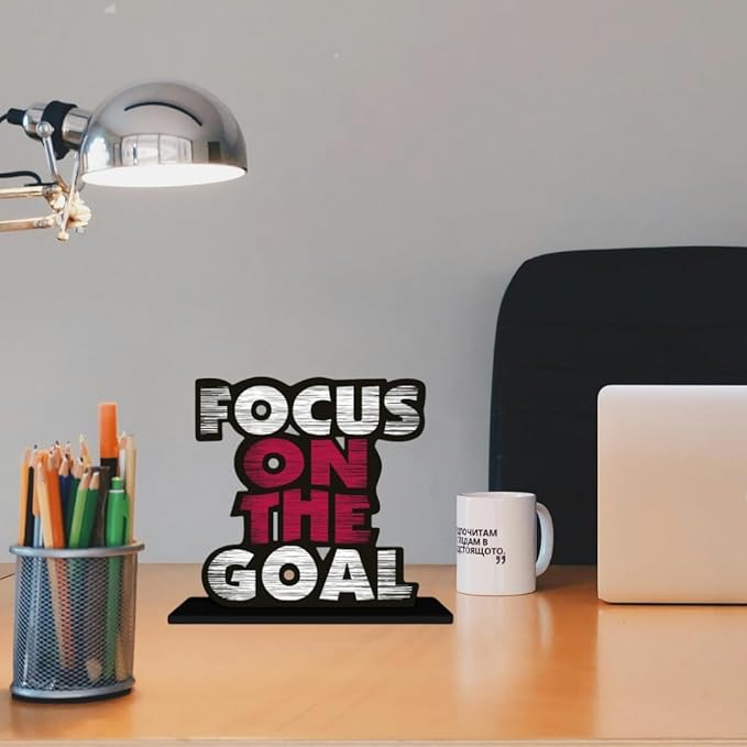 - Eye-catching desk decor featuring the quote “Focus on the Goal”—perfect for inspiring determination, productivity, and focus in any workspace or study environment.