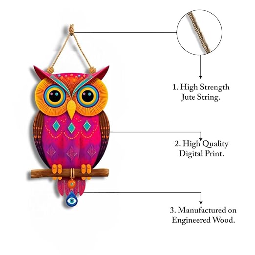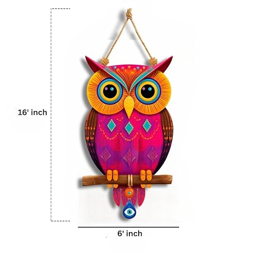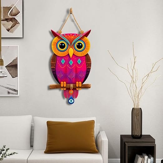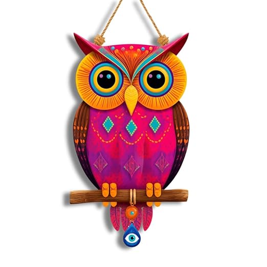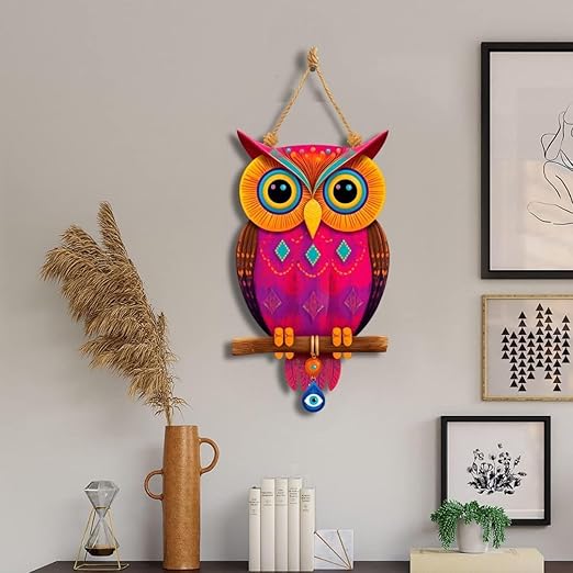 - Owl Shape Wooden Wall Hanging – Unique handcrafted owl design wall art with evil eye decoration, adding charm, wisdom, and protection to your home décor.