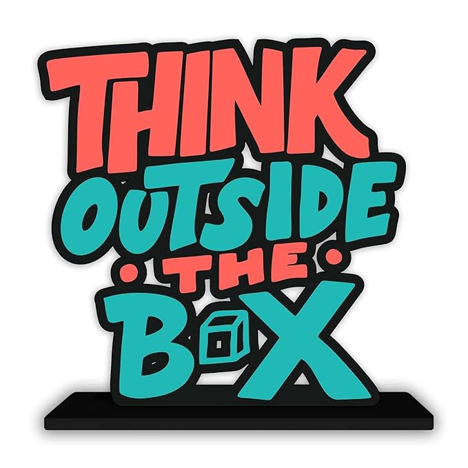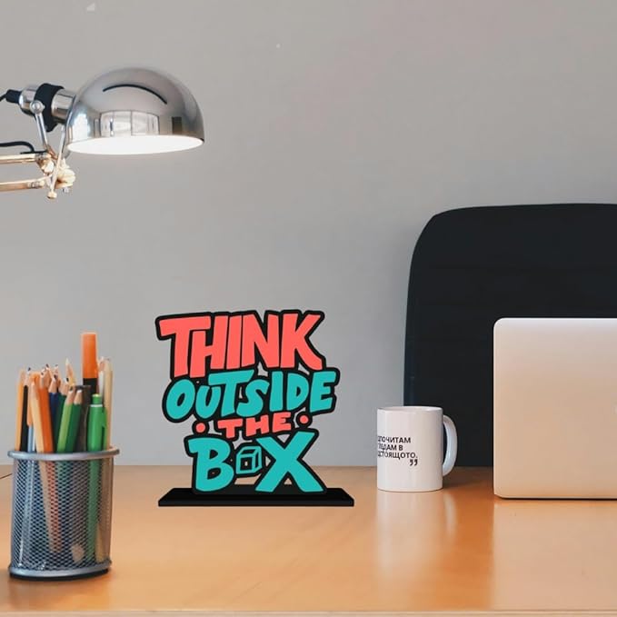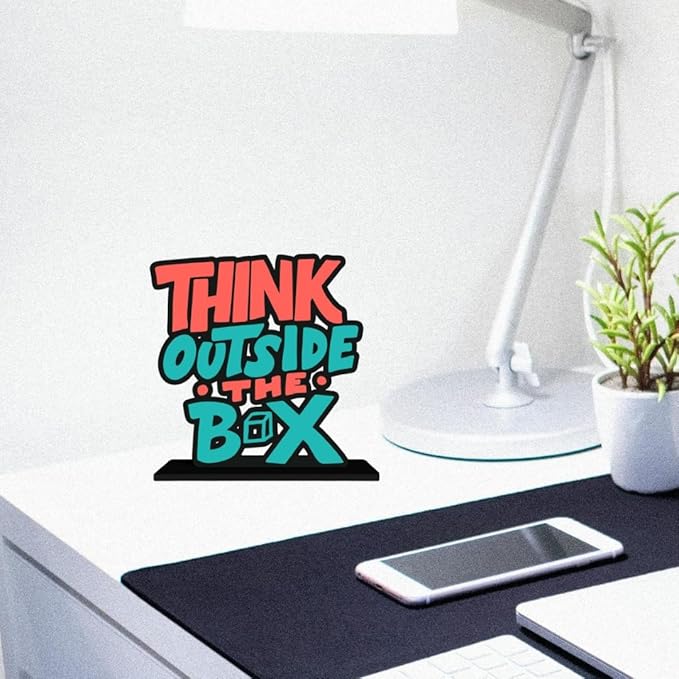 - Table decor featuring the bold quote “Think Outside the Box”—ideal for inspiring creativity, innovation, and fresh thinking at home or work.